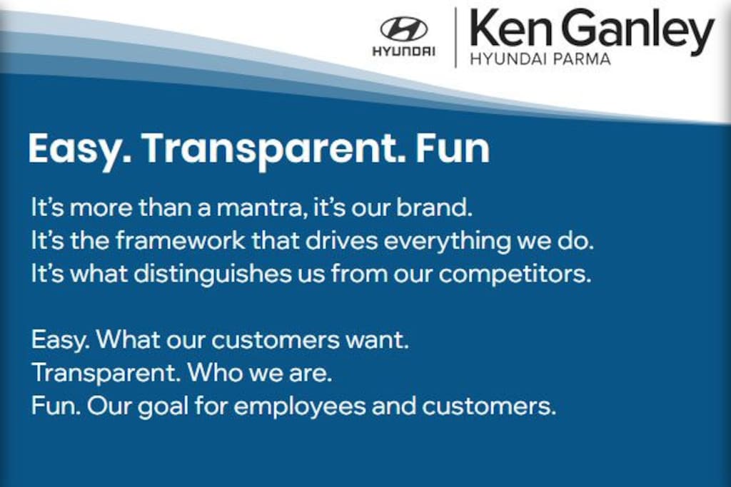 IT'S THAT EASY! Ganley Hyundai of Parma is committed to giving you some of the best values in the market on Pre-Owned and Certified Pre-Owned cars, trucks and SUVâs! That means that our selection process and our reconditioning approach is designed to offer you the best quality pre-owned vehicles for a fair, clearly advertised price BELOW their market value! At Ganley Hyundai of Parma, our focus is on value, not cut rate pricing on sub-standard vehicles. Our knowledgeable and courteous product specialists will guide you thru the buying process using a transparent and pressure free approach! Just some of the benefits that you will receive include: - Our best low price clearly advertised for each vehicle...we price our cars not our customers! - A free CARFAX Vehicle History Report available on our website or in our store! - Pre-Owned vehicles receive an extensive inspection, performed by an ASE Certified Technician in our state of the art facility. - A complimentary 3 month / 3000 mile warranty on qualifying vehicles! - Financing options for ANY credit score or any situation! - Complimentary carwashes at our facility for any vehicle purchased at Ganley Hyundai of Parma!