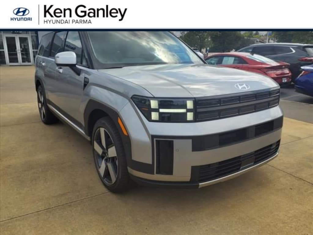 AWD, Gray Leather, 12 Speakers, 3rd row seats: bench, 4-Wheel Disc Brakes, ABS brakes, Air Conditioning, Alloy wheels, AM/FM radio: SiriusXM, Apple CarPlay & Android Auto, Auto High-beam Headlights, Auto-dimming Rear-View mirror, Automatic temperature control, Axle Ratio: 3.316, Brake assist, Bumpers: body-color, Cargo Cover/Screen, Cargo Net, Carpeted Floor Mats, Delay-off headlights, Driver door bin, Driver vanity mirror, Dual front impact airbags, Dual front side impact airbags, Electronic Stability Control, Emergency communication system, Exterior Parking Camera Rear, First Aid Kit, Four wheel independent suspension, Front anti-roll bar, Front Bucket Seats, Front Center Armrest, Front dual zone A/C, Front reading lights, Fully automatic headlights, Garage door transmitter: HomeLink, Heated & Ventilated Front Bucket Seats, Heated door mirrors, Heated front seats, Heated rear seats, Heated steering wheel, Illuminated entry, Knee airbag, Leather Seat Trim, Leather steering wheel, Low tire pressure warning, Memory seat, Navigation System, Occupant sensing airbag, Option Group 01, Outside temperature display, Overhead airbag, Overhead console, Panic alarm, Passenger door bin, Passenger vanity mirror, Power door mirrors, Power driver seat, Power Liftgate, Power moonroof, Power passenger seat, Power steering, Power windows, Radio: AM/FM/HD Bose Premium Audio System, Rain sensing wipers, Rear anti-roll bar, Rear seat center armrest, Rear side impact airbag, Rear window defroster, Rear window wiper, Remote keyless entry, Security system, Speed control, Speed-sensing steering, Split folding rear seat, Spoiler, Steering wheel mounted audio controls, Tachometer, Telescoping steering wheel, Tilt steering wheel, Traction control, Trip computer, Turn signal indicator mirrors, Variably intermittent wipers, Ventilated front seats, Wheels: 20" x 8.5J Alloy, AWD, Gray Leather. Hyundai Santa Fe 2024 Shimmering Silver Pearl Limited